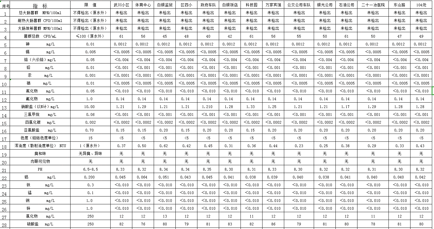 信息名稱 2020年1月用戶水龍頭水檢測(cè)表 發(fā)布機(jī)構(gòu) 白銀市給排水公司